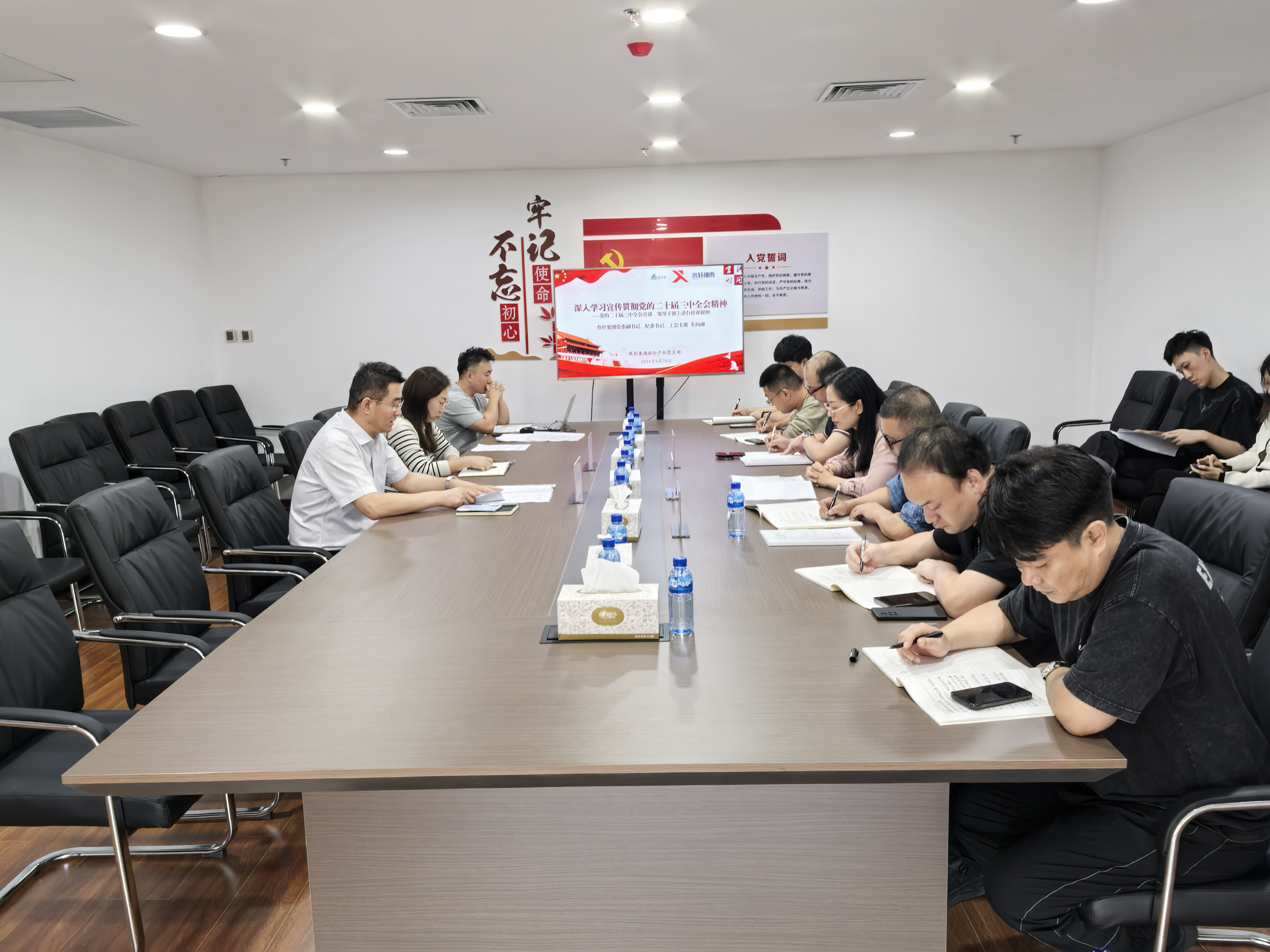 會(huì)議首先開展集體學(xué)習(xí),學(xué)習(xí)“第一議題”《習(xí)近平:在紀(jì)念鄧小平同志誕辰120周年座談會(huì)上的講話》并進(jìn)行交流發(fā)言;投控集團(tuán)黨委副書記、紀(jì)委書記車向前同志面向全體員工開展理論黨的二十屆三中全會(huì)精神宣講活動(dòng);聯(lián)合產(chǎn)權(quán)支部副書記面向全體員工開展二十屆三中全會(huì)宣講并講授三季度黨課;鞏固深化黨紀(jì)學(xué)習(xí)教育成果,學(xué)習(xí)《習(xí)近平作出重要指示強(qiáng)調(diào) 堅(jiān)持融入日常抓在經(jīng)常 把黨紀(jì)學(xué)習(xí)教育成果持續(xù)轉(zhuǎn)化為推動(dòng)高質(zhì)量發(fā)展的強(qiáng)大動(dòng)力》;黨紀(jì)學(xué)習(xí)教育,學(xué)習(xí)《中國共產(chǎn)黨不合格黨員組織處置辦法》;學(xué)習(xí)《中國共產(chǎn)黨一百年大事記(1946年-1950年)》;黨建知識(shí)“微課堂”,觀看“【權(quán)威訪談】深化黨的建設(shè)制度改革 為推進(jìn)中國式現(xiàn)代化提供堅(jiān)強(qiáng)保證”;最后,會(huì)議公示了9月份黨費(fèi)收繳情況并集中收看了最新一期燈塔大課堂。