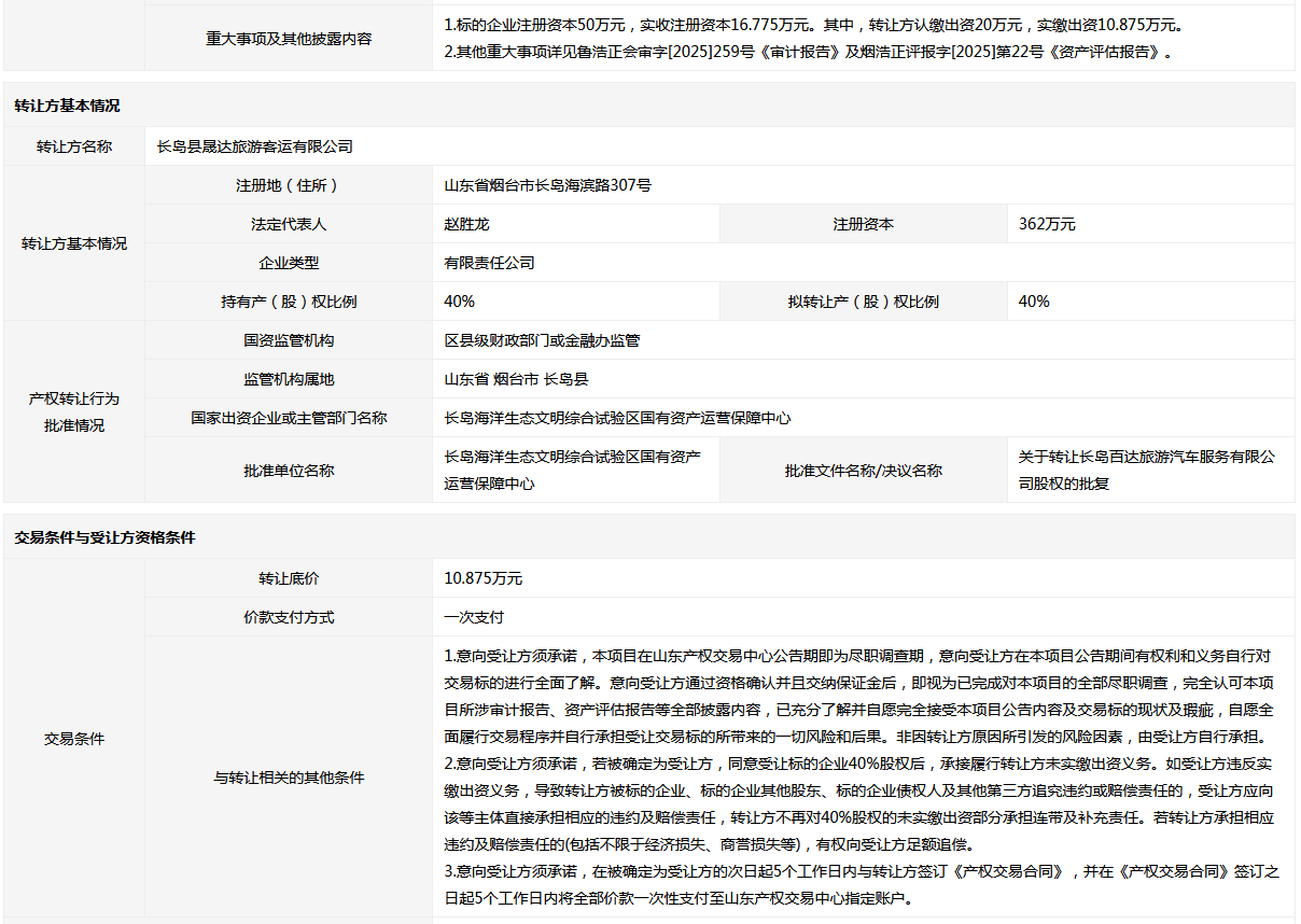 轉(zhuǎn)讓方:長島縣晟達(dá)旅游客運(yùn)有限公司