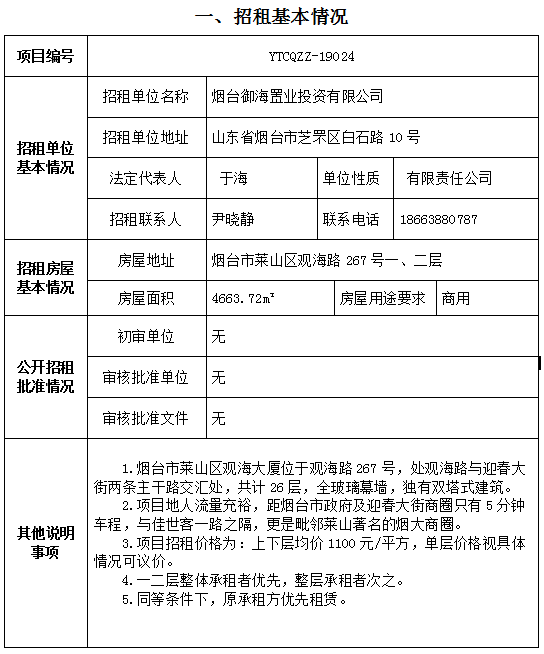 萊山區(qū)觀海大廈一二層招租項(xiàng)目