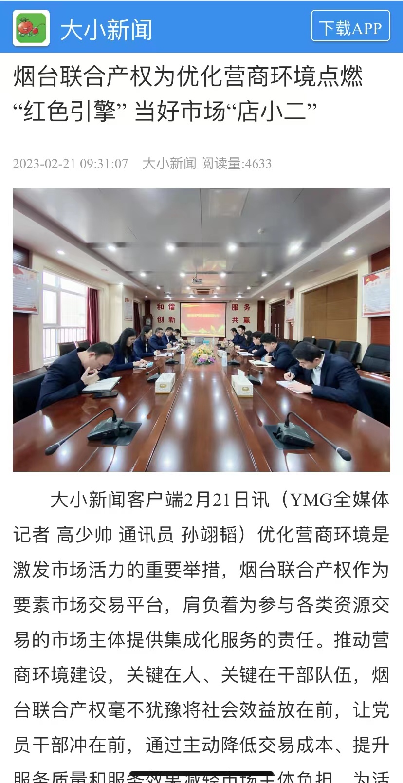 近日,“學(xué)習(xí)強(qiáng)國”煙臺(tái)平臺(tái)、煙臺(tái)日?qǐng)?bào)社大小新聞網(wǎng)、大眾網(wǎng)煙臺(tái)刊發(fā)署名文章《煙臺(tái)聯(lián)合產(chǎn)權(quán)為優(yōu)化營商環(huán)境點(diǎn)燃“紅色引擎”當(dāng)好市場“店小二”》,全面介紹了2022年煙臺(tái)聯(lián)合產(chǎn)權(quán)作為要素市場交易平臺(tái),肩負(fù)著為參與各類資源交易的市場主體提供集成化服務(wù)的責(zé)任,在推動(dòng)營商環(huán)境建設(shè)方面,毫不猶豫將社會(huì)效益放在前,讓黨員干部沖在前,通過主動(dòng)降低交易成本、提升服務(wù)質(zhì)量和服務(wù)效果減輕市場主體負(fù)擔(dān)、為活躍要素市場點(diǎn)燃“紅色引擎”。